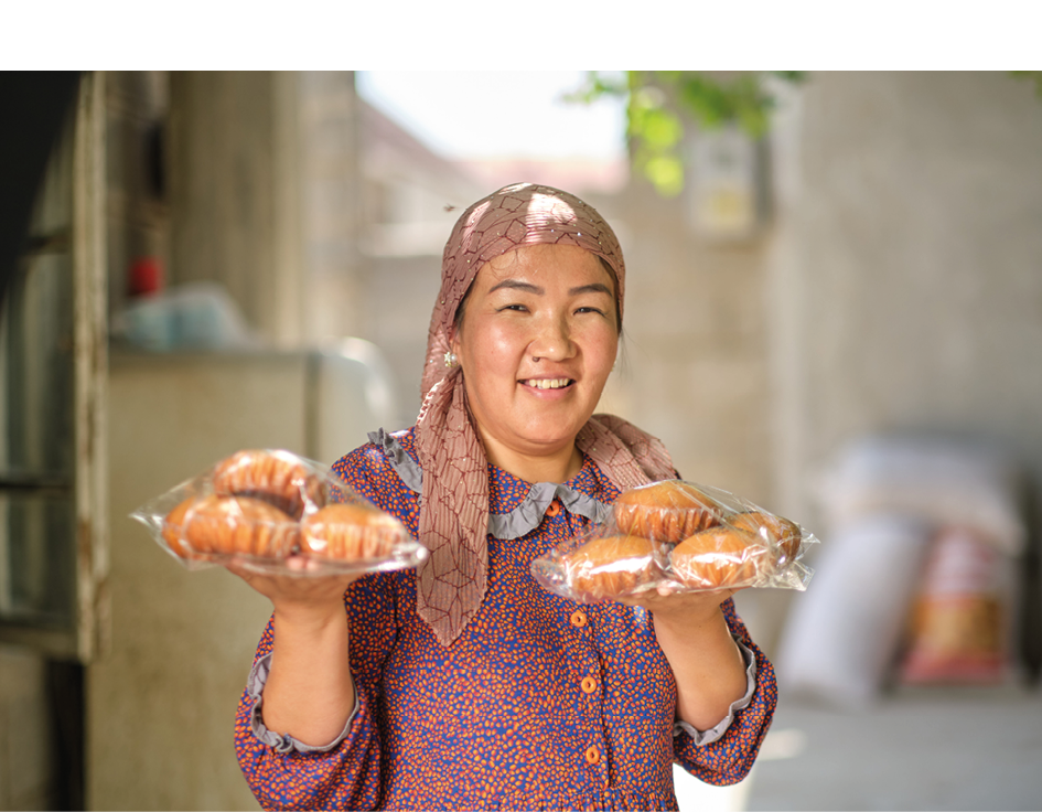 During various rural holidays, Aziza and her neighbours from Jany-Jer village in the Batken region would bake different types of buns and gingerbread together. However, they could bake no more than 100 buns a day in a home oven, and preparing the dough was time-consuming. After completing the training through the project, Aziza, along with her neighbours, learned new baking techniques and recipes for 20 types of confectionery. Thanks to the equipment provided by the project, she was able to increase her production tenfold.