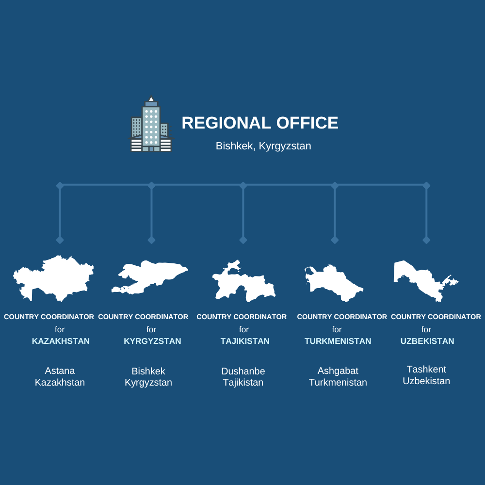 BOMCA regional structure in Central Asia consists of the regional office in Bishkek (Kyrgyzstan), and country coordinators in each of the Central Asian countries. It is directly responsible for planning, organisation and execution of all project activities in the field.